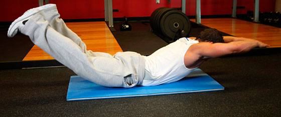 Известный факт, что бытие определяет сознание, но не все задумывается над тем, что наш образ и способ жизни напрямую сказывается на внешнем облике и самочувствии. Современная жизнь – это высокие технологии, высокие темпы, скорости и, чаще всего, малоподвижный, умственный труд. У каждого из нас есть компьютер, но вот время на то, чтобы исправно посещать тренажерный зал, есть у считанных единиц. К чему это ведет? Прежде всего, к проблемам со спиной. В данном посте мы приведем примеры нескольких легко выполнимых упражнений, которые являются весьма эффективными для укрепления мышц спины в домашних условиях. Чтобы Ваша спина, а, следовательно, и Вы, чувствовали себя отлично, нет необходимости идти в зал и «тягать железо». Комплекс из следующих изометрических упражнений не вынуждает предпринимать активные физические действия, и в то же время заставляет попотеть. Уделяйте себе не более 20 минут в день, и уже через неделю походка станет легче, а осанка благороднее. Данные упражнения можно выполнять супер-сетом. ![]() Упражнения для укрепления мышц спины в домашних условияхПомогают закачать спину, что особенно продуктивно при слабых мышцах, сутулости, сколиозе или межпозвоночных грыжах. Рекомендуется также заниматься плаванием. 1 Противодействие Как выполняется? Исходное положение – на полу в позу «собаки», коленями и ладонями упирайтесь в пол. Живот должен быть втянут, спина выпрямлена, бедра зафиксированы. Левую ногу вытяните назад, распрямив колено. Одновременно с ногой, поднимите правую руку и тяните ее вперед. Зафиксируйтесь в данном положении на 5-10 секунд, после чего смените руку и ногу. Выполняйте не менее 12 раз. Какие мышцы работают? При выполнении этого статичного упражнения задействованы все мышцы, что ведет к стабилизации позвоночника, а также помогает улучшить координацию. Если Вы желаете усложнить упражнение, то увеличивайте время выполнения. ![]() 2 Супермен Лягте на живот, руки держите перед собой. Начинайте прогибаться, поднимая одновременно руки и ноги вверх. Постарайтесь зафиксироваться в верхнем положении на 1-2 секунды, после чего вернитесь обратно. Для эффекта его нужно делать не менее 8 раз. Что задействовано при этом упражнении? Поднимая корпус вверх, Вы укрепляете мышцы спины, особенно мышц поясничного отдела позвоночника. Упражнение окажется эффективнее, если Вы будете фиксировать корпус и ноги поднятыми дольше. ![]() 3 Обратная гиперэкстензия Для этого укрепляющего спину упражнения подойдут 2 стула или небольшой журнальный столик, на которые необходимо лечь на живот только туловищем, чтобы ноги и ягодицы были за границами. Обхватившись руками о столик, максимально поднимите чуть разведенные ноги вверх. Вернитесь в исходное положение. Повторите 15-20 раз. Здесь особенно хорошо прорабатываются ягодичные мышцы и поясница. Чтобы максимально нагрузить мышцы, попросите кого-нибудь оказывать небольшое давление на ноги во время выполнения. ![]() 4 Выпады вперед ногами Начальное положение – руки положите на бедра, спина прямая. Сделайте шаг вперед, согнув ногу в колене, и останьтесь в таком положении не менее 3 секунд. Обратите внимание на правильную технику выполнения! Спина должна быть прямая, плечи на уровне бедер. Колено не должно выходить за линию носка и должно сгибаться под углом в 90 градусов. Верните ногу обратно, помен